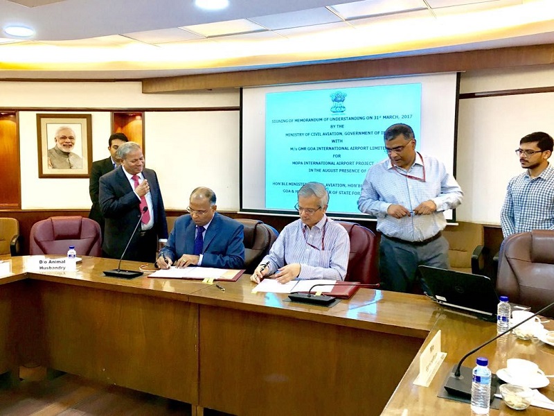 Signing ceremony of Memorandum of Understanding (MOU) between Ministry of Civil Aviation, Government of India and GMR Goa International Airport Limited in New Delhi – 31st March 2017